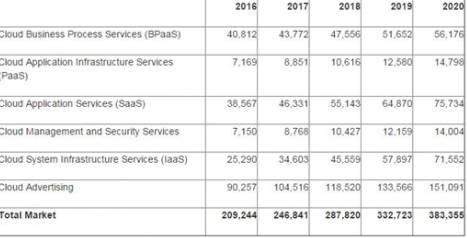 全球公有云服务预测(单位:百万美元)